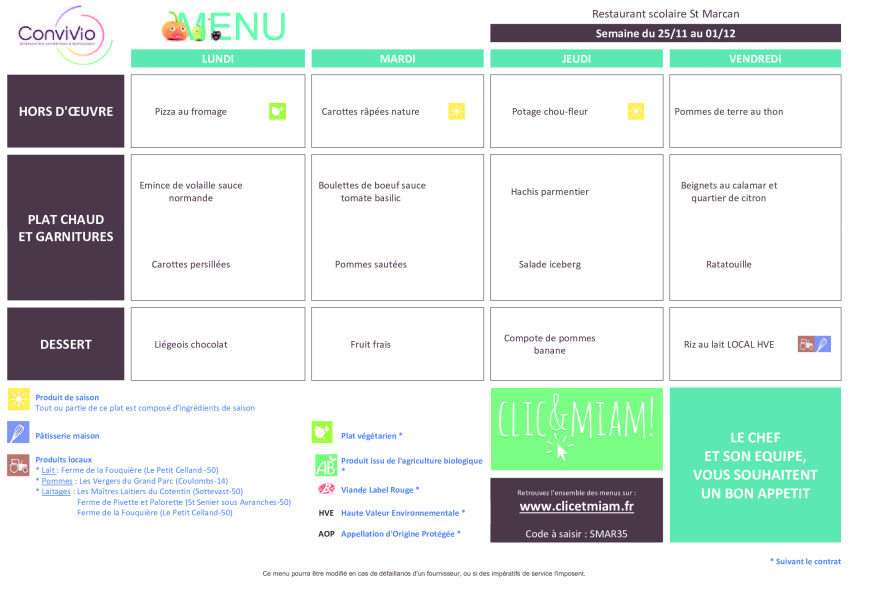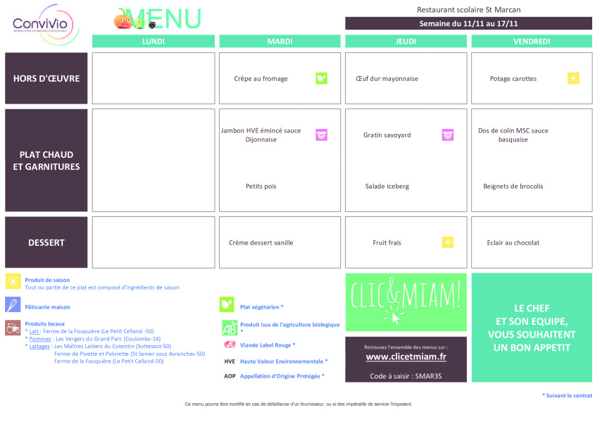 Menus pour les écoles de Saint Georges de Gréhaigne et Saint Marcan