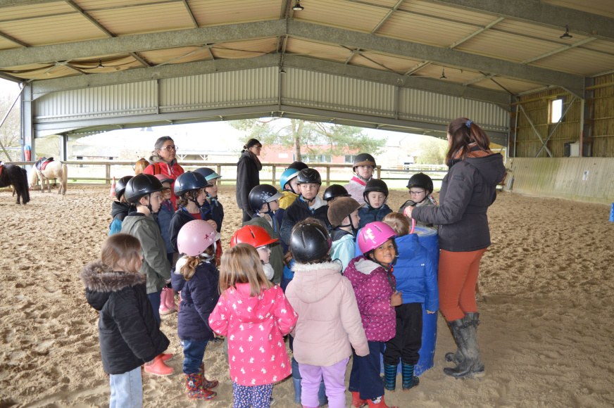 Le dernier jour, nous avons fait notre dernière séance de poney. Nous avons retrouvé les mêmes poneys que la veille. Nous les avons pansés et sellés.