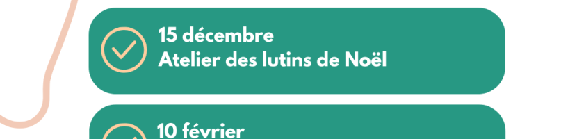 Chers parents, L’atelier des lutins se déroulera le vendredi 15 décembre à 17h à la salle des fêtes de Saint Marcan. Tous les bénévoles sont les bienvenus pour nous aider à animer les activités/buvette. Sur place nous allons y vendre des gâteaux, si vous souhaitez y contribuer n’hésitez pas (…)